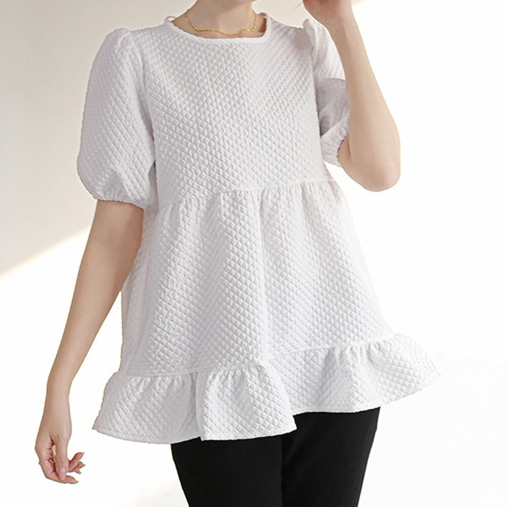 フレアトップスのふんわりしたフォルムが大人可愛い印象を与えること間違いなし